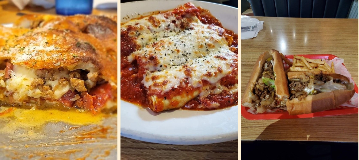 Enjoy the oven-baked lasagna and the delicious meat lovers calzone. Don’t miss the desserts, especially the turtle cheesecake.